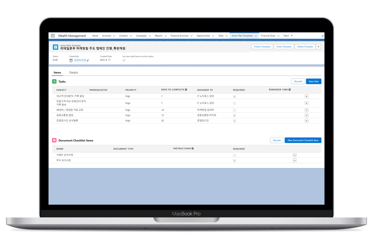 영업 직원이 고객 자산과 금융상품을 체계적으로 관리할 수 있는 리테일 금융 통합 환경을 구축해보세요.